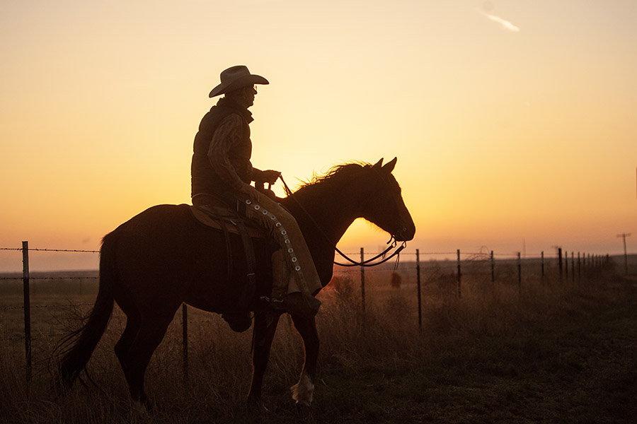 Miles Baker checks cows on his family's ranch near the Wichita Mountains in southwestern Oklahoma. The rope horse trainer believes putting horses to work in open spaces makes them better performers in the arena. Photo by Ross Hecox, Western Horseman, 2020